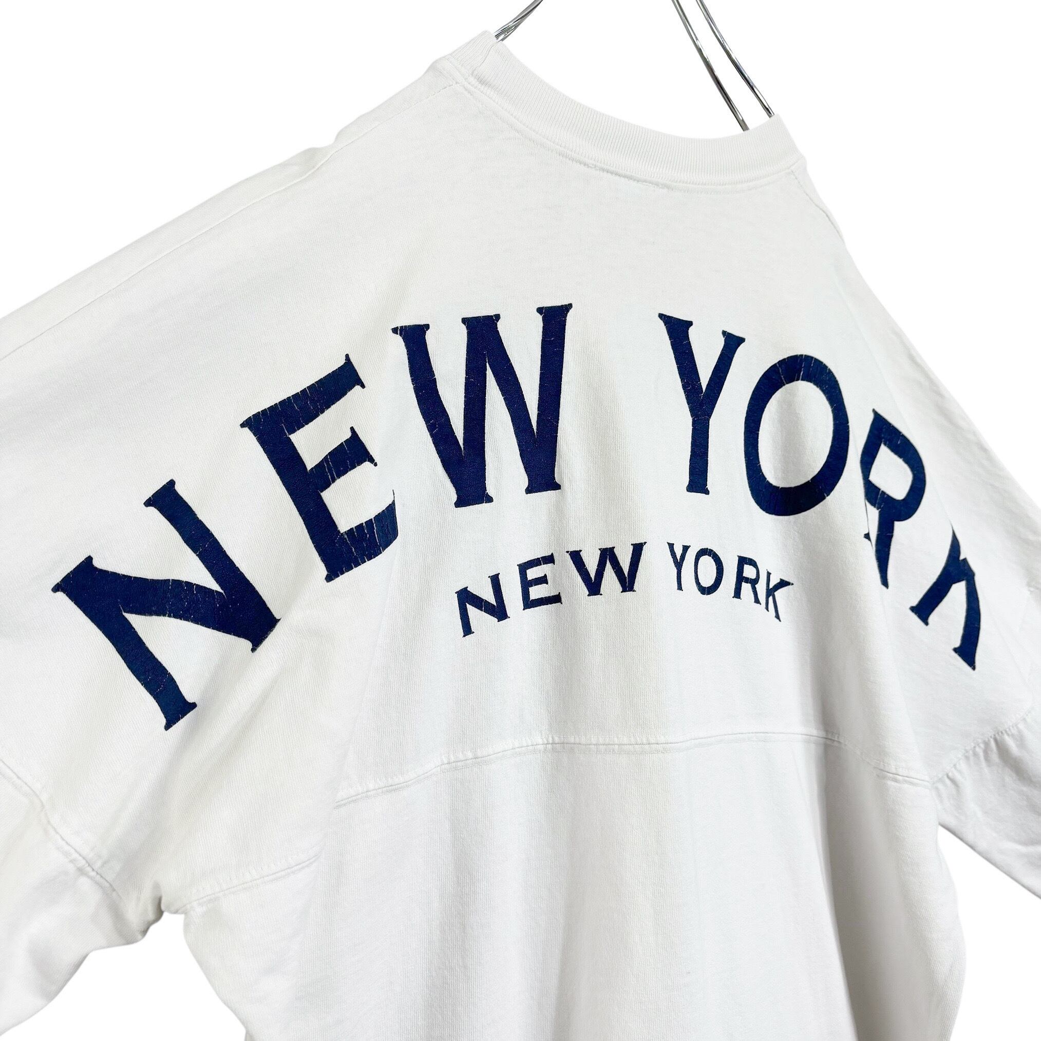 "NEWYORK"の文字バランス、白×ネイビーの