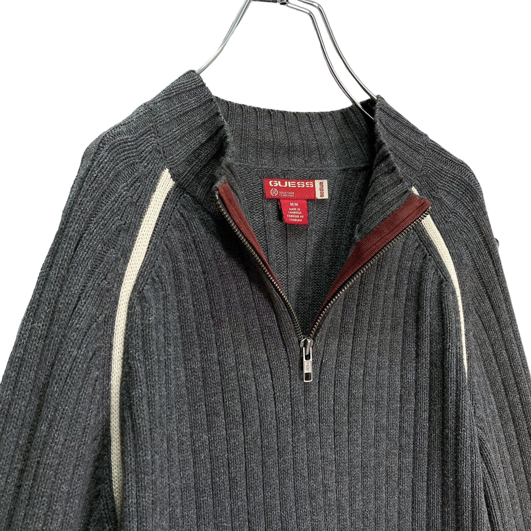 90s GUESS half-zip L/S design rib knit sweater